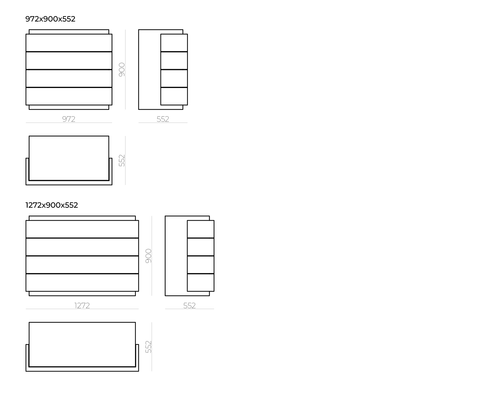 Габаритные размеры:972х552х900 mm; 1272х552х900 mm