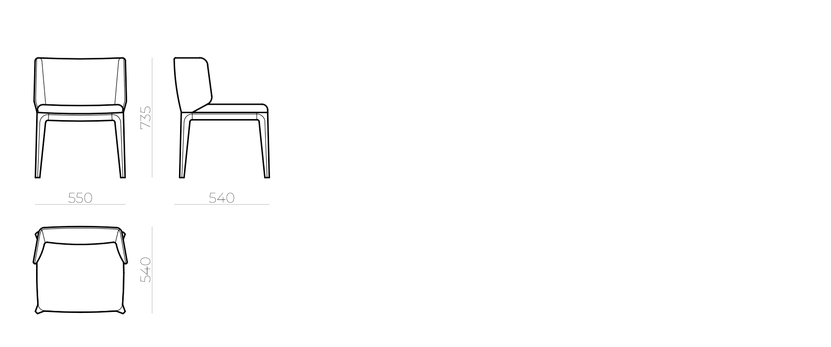 Габаритные размеры стула: 550x540х735 mm Высота посадки: 450 mm