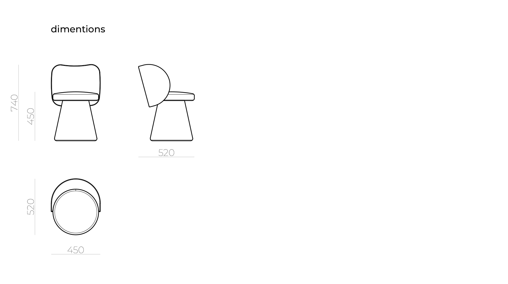 Невероятно простой и лаконичный стул, все линии которого подчинены радиальной системе. Сидение может быть установлено на поворотный или поворотно-возвратный механизм выдерживающий 200кг.