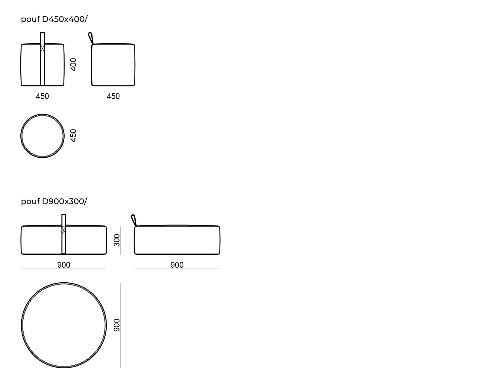 Габариты пуфа: D450х400, D900х300 mm