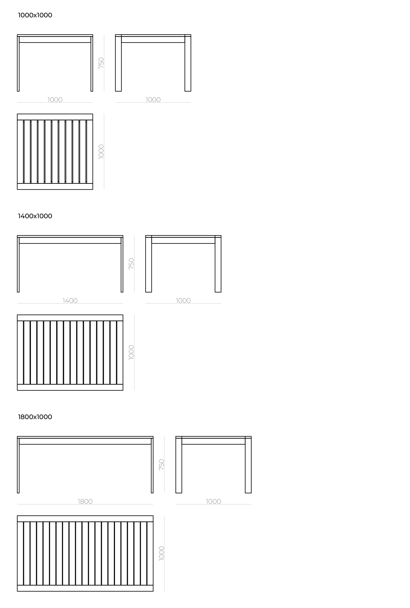 Габаритные размеры: 1000х1000х750 mm; 1400х1000х750 mm; 1800х1000х750 mm;