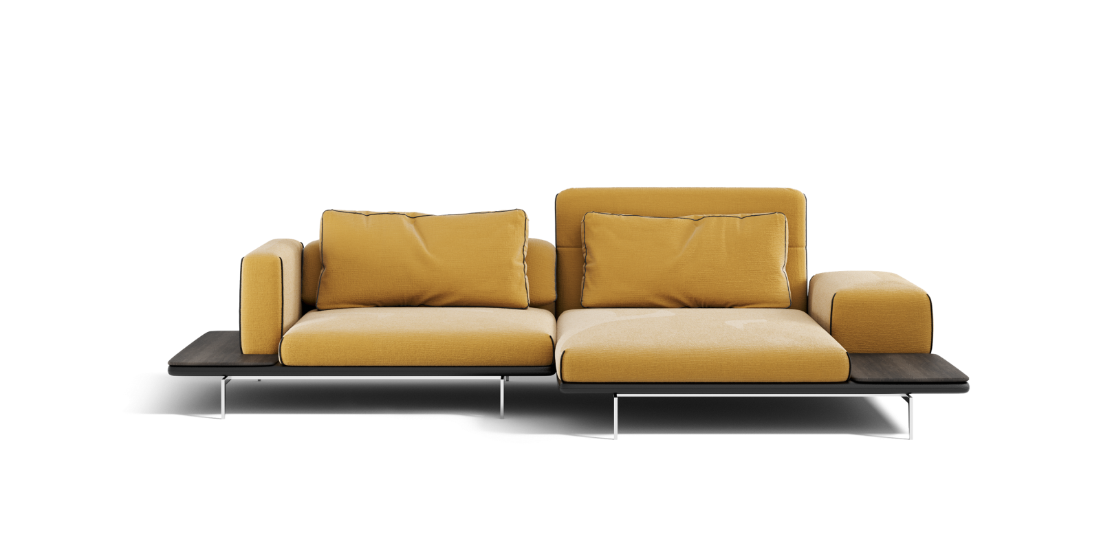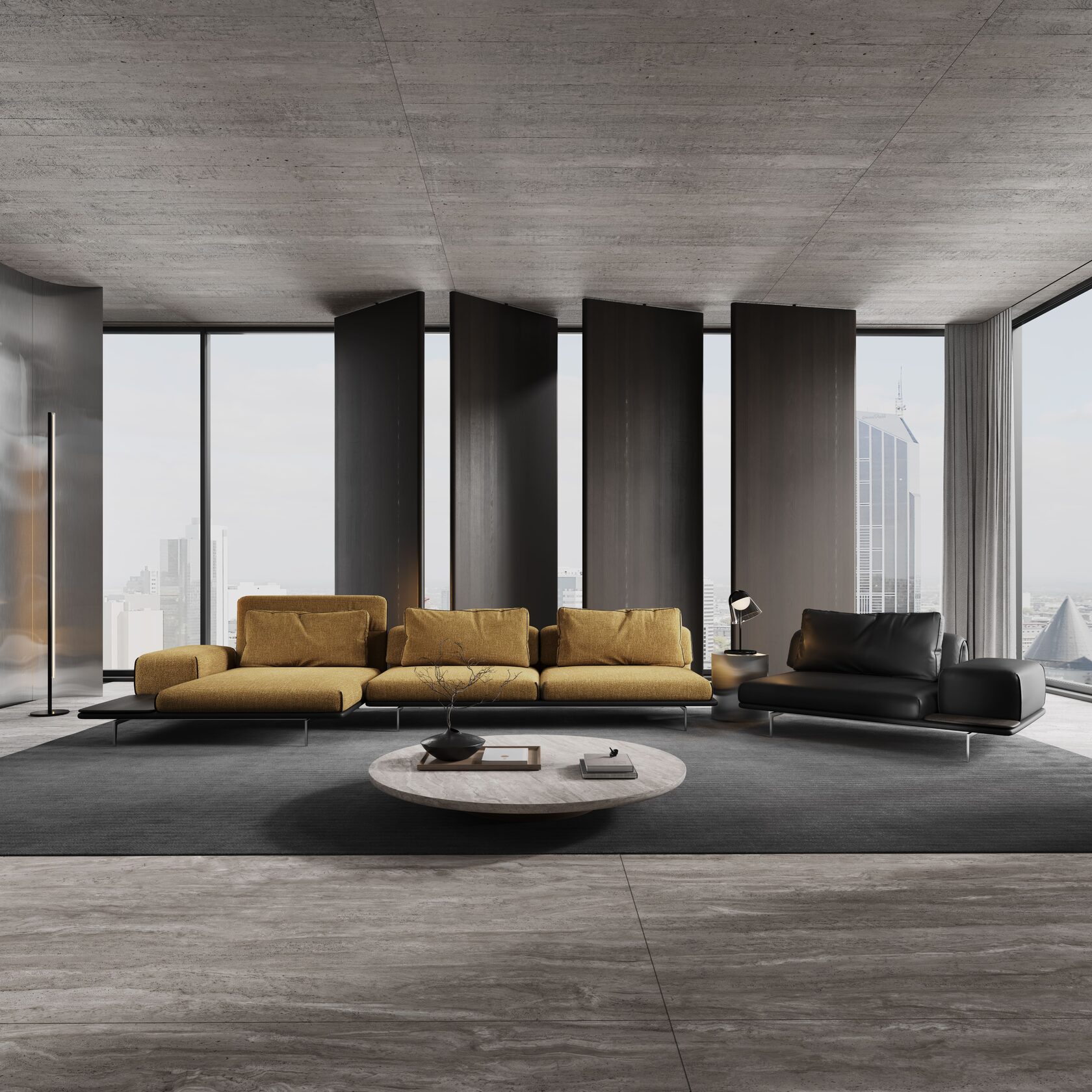 Основание дивана обтянуто кожей. Ножки выполнены из полированной нержавеющей стали.