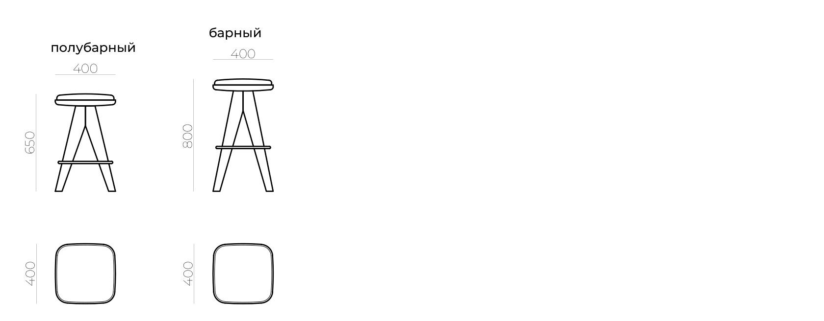 Габаритные размеры стула: 400x400 mm Высота посадки: 650/800 mm