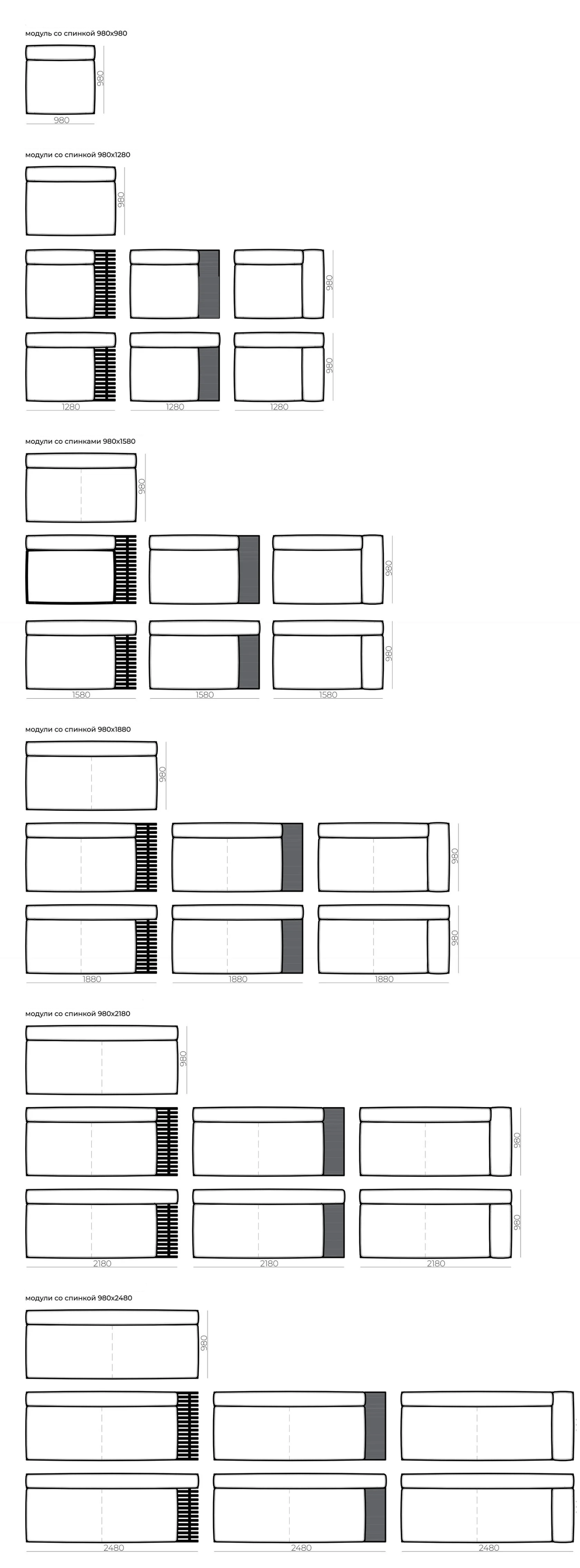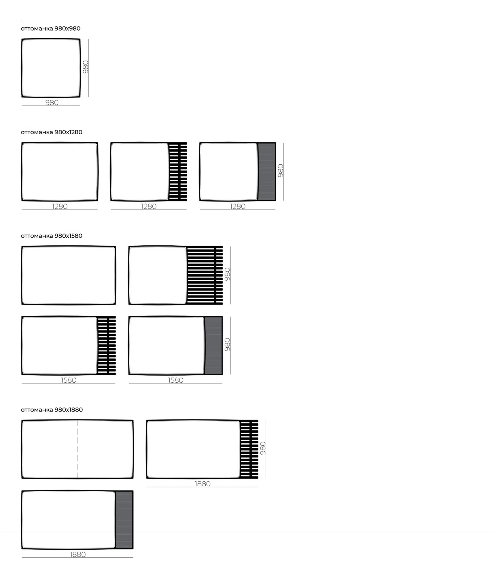 Мебель может быть выполнена в любой из представленных тканей. За образцами тканей и расчетом вашей конфигурации обратитесь к менеджеру.