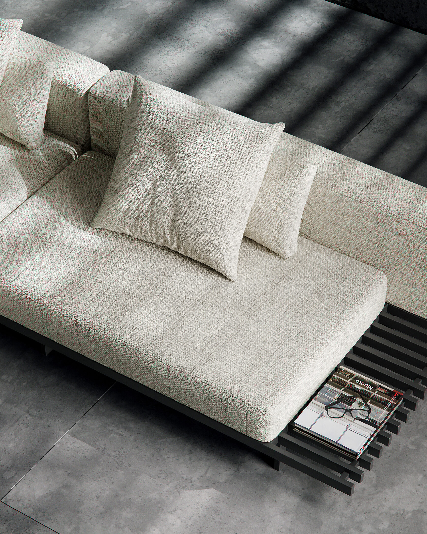 STRIPE oak sofa имеет 13 размеров оснований, на которых можно располагать подушки, спинки, подлокотники и журнальные столики так, как вы захотите.